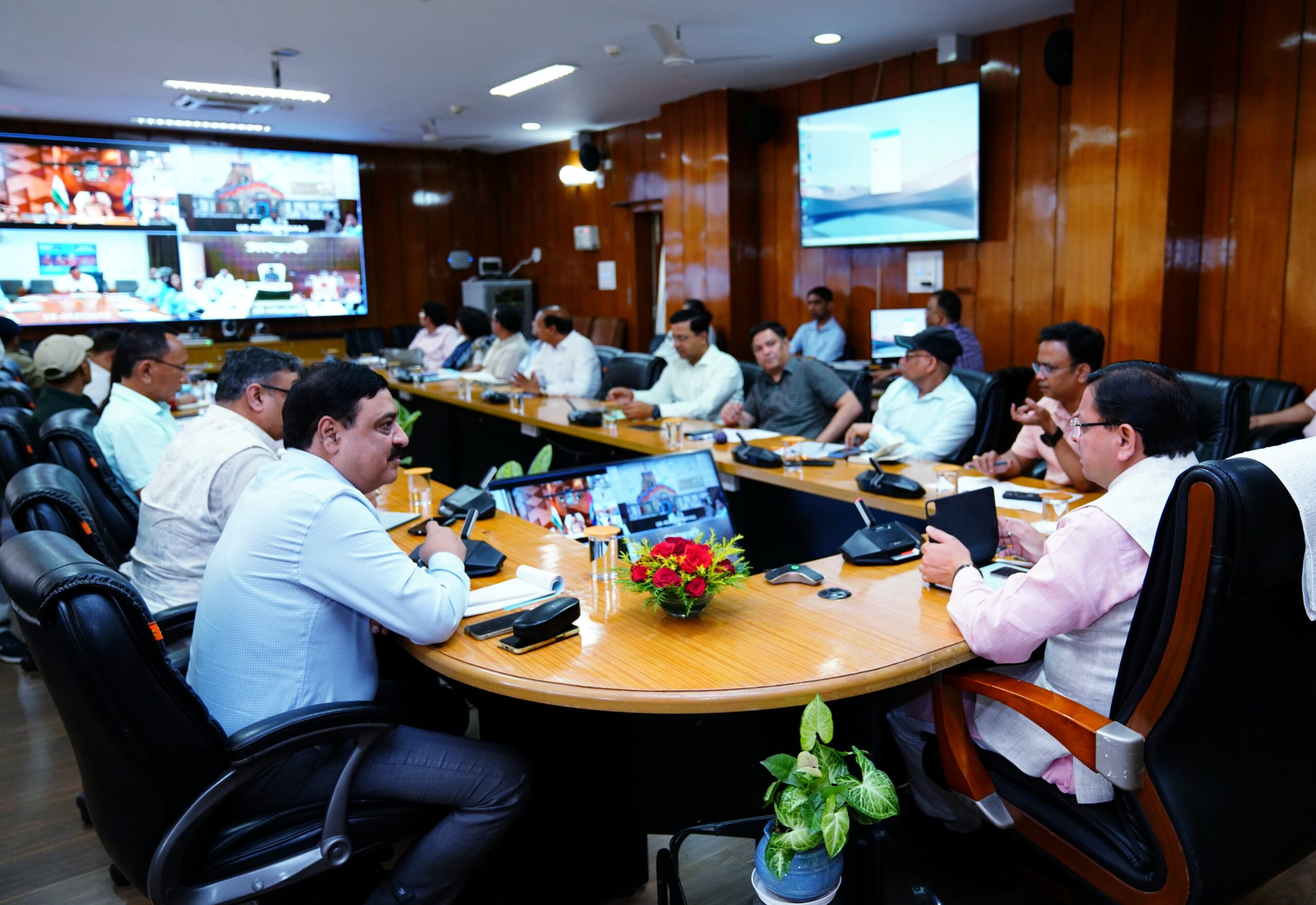 जिलाधिकारी उत्तरकाशी डॉ. मेहरबान सिंह बिष्ट ने कहा कि गंगोत्री और यमुनोत्री धाम की यात्रा के बारे में जानकारी देते हुए कहा कि आज गंगोत्री धाम में 11 हजार और यमुनोत्री धाम में 10 हजार श्रद्धालुओं के दर्शन करने की संभावना है। श्रद्धालुओं के लिए जिन स्थानों पर ठहराव की व्यवस्था की गई वहां पर सभी मूलभूत सुविधाएं उपलब्ध कराई जा रही हैं। एसपी उत्तरकाशी ने कहा कि कुछ लोग फर्जी रजिस्ट्रेशन वाले पाये गये हैं, जिन पर सख्त कार्रवाई की जा रही है। जिलाधिकारी चमोली हिमांशु खुराना ने कहा कि श्री बद्रीनाथ में यात्रा सुचारू रूप से चल रही है। आगामी सप्ताह में अवकाश के दृष्टिगत श्रद्धालुओं की संख्या में वृद्धि के दृष्टिगत भी सभी व्यवस्थाएं की जा रही हैं। बैठक में प्रमुख सचिव आर. के सुधांशु, सचिव अरविन्द सिंह ह्यांकी, डॉ. पंकज कुमार पाण्डेय, सचिन कुर्वे, गढ़वाल कमिश्नर विनय शंकर पाण्डेय, सचिव एस.एन. पाण्डेय, विशेष सचिव डॉ. पराग मधुकर धकाते, महानिदेशक सूचना बंशीधर तिवारी, जिलाधिकारी देहरादून सोनिका, एसएसपी अजय सिंह, वर्चुअल माध्यम से डीजीपी अभिनव कुमार, जिलाधिकारी हरिद्वार धीराज गर्ब्याल उपस्थित थे।