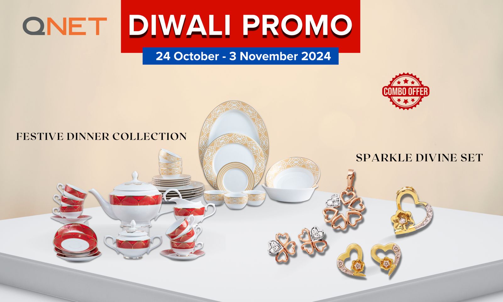 इस दिवाली पर QNET ने स्पेशल हैंपर्स तैयार किए हैं जो आपके उत्सव को और भी स्पेशल बनाएंगे। स्पेशल प्राइस पर (24 अक्टूबर से 22 नवंबर तक) दो एक्साइटिंग ऑफर्स हैं – स्पार्कल डिवाइन सेट जिसमें किन्नारी ‘मीरा’ और ‘डेज़ी’ है, और फेस्टिव डिनर कलेक्शन जिसमें ORITSU अरिस्टो डिनर सेट और ज़िनिया टी सेट शामिल हैं।