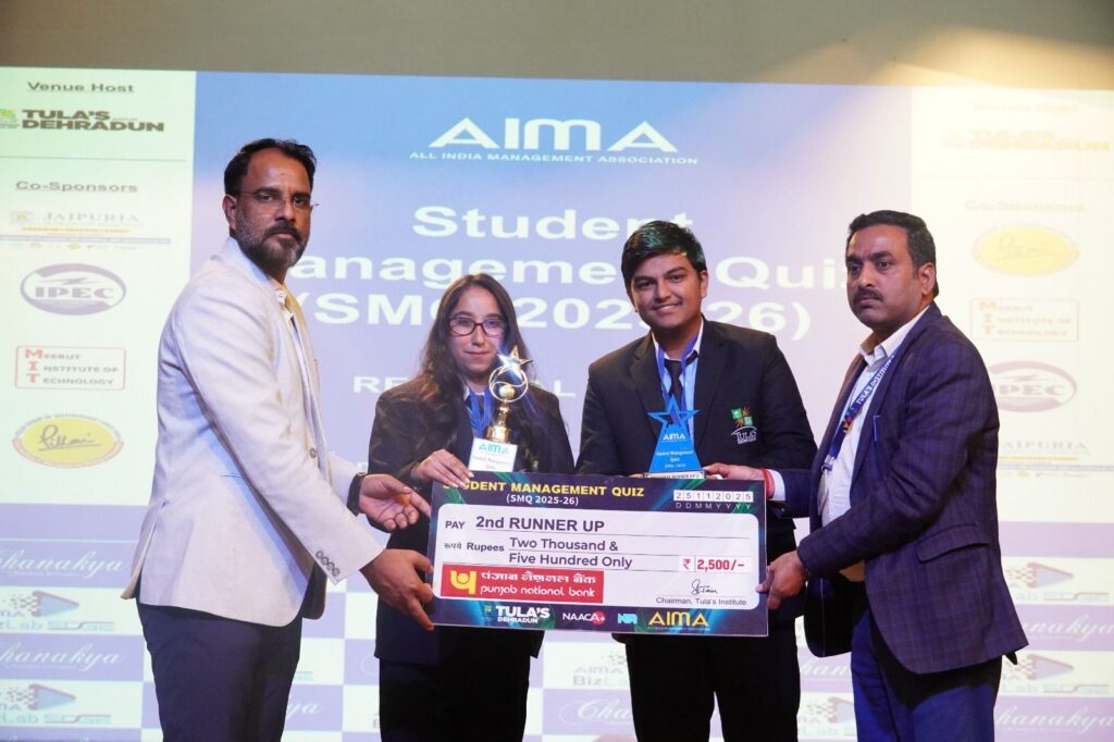 देहरादून : तुलाज़ इंस्टिट्यूट के ग्रेजुएट स्कूल ऑफ बिज़नेस ने ऑल इंडिया मैनेजमेंट एसोसिएशन (एआईएमए) के सहयोग से स्टूडेंट मैनेजमेंट क्विज़ 2025–26 के रीजनल राउंड की मेजबानी की, जिसमें क्षेत्र के 13 प्रतिष्ठित विश्वविद्यालयों और संस्थानों से 189 टीमों ने हिस्सा लिया। इस बड़े स्तर की भागीदारी ने यह दर्शाया कि विद्यार्थियों में वे प्रतियोगी शैक्षणिक प्लेटफ़ॉर्म के प्रति उत्साह बढ़ रहा है, जो विश्लेषणात्मक सोच, नेतृत्व क्षमता और प्रबंधकीय कौशल को बढ़ावा देते हैं।