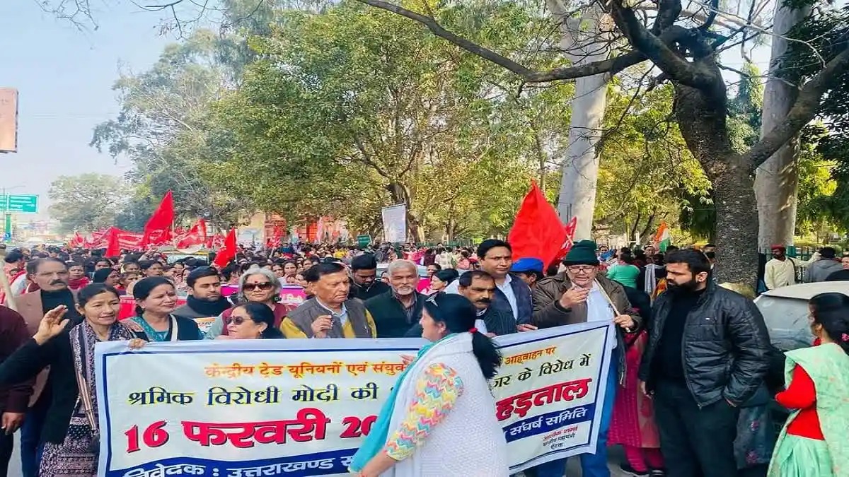 देहरादून/रुद्रप्रयाग: न्यूनतम मासिक वेतन 26 हजार रुपए घोषित किए जाने समेत अपनी विभिन्न मांगों को लेकर शुक्रवार को उत्तराखंड संयुक्त ट्रेड यूनियन संघर्ष समिति के बैनर तले विभिन्न संगठनों ने प्रदर्शन किया। देहरादून में भी गांधी पार्क से जिला अधिकारी कार्यालय तक रैली निकाली गई। इस रैली में आंगनबाड़ी कार्यकत्री सेविका मिनी कर्मचारी संगठन,सीटू,सीपीआई, इंटक,एटक, कांग्रेस जैसे विभिन्न संगठन शामिल हुए।